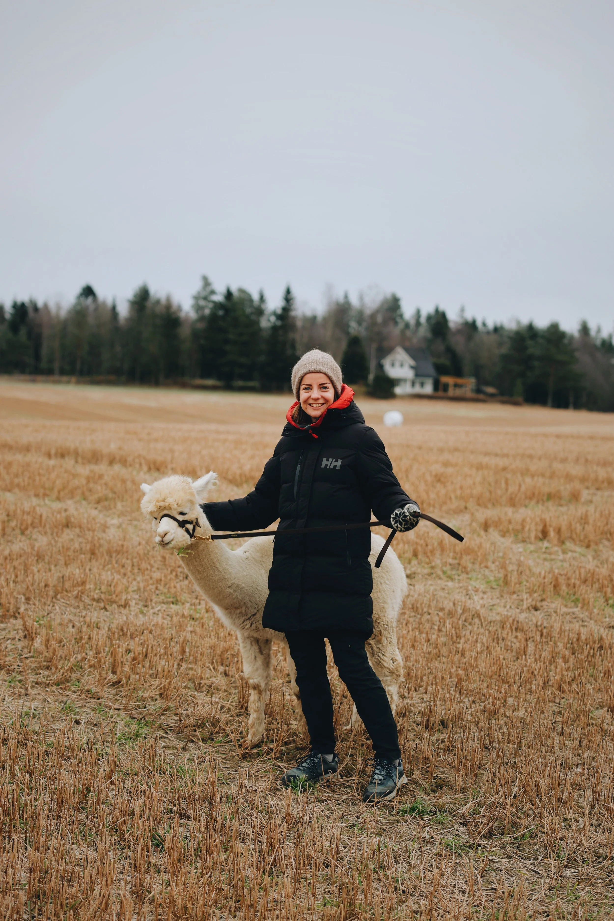 Å gå tur med alpakkaene er veldig koselig.
